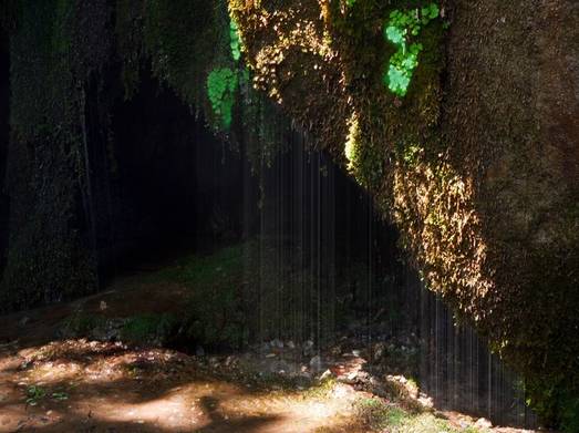 ❺ 天光一线:龙宫的顶部,两山相夹,只留一线,光亮从线中射入,就象给龙宫点上一盏日光灯,而这道瀑布,又从线的一头飞泻而下,故称为“天光一线”。