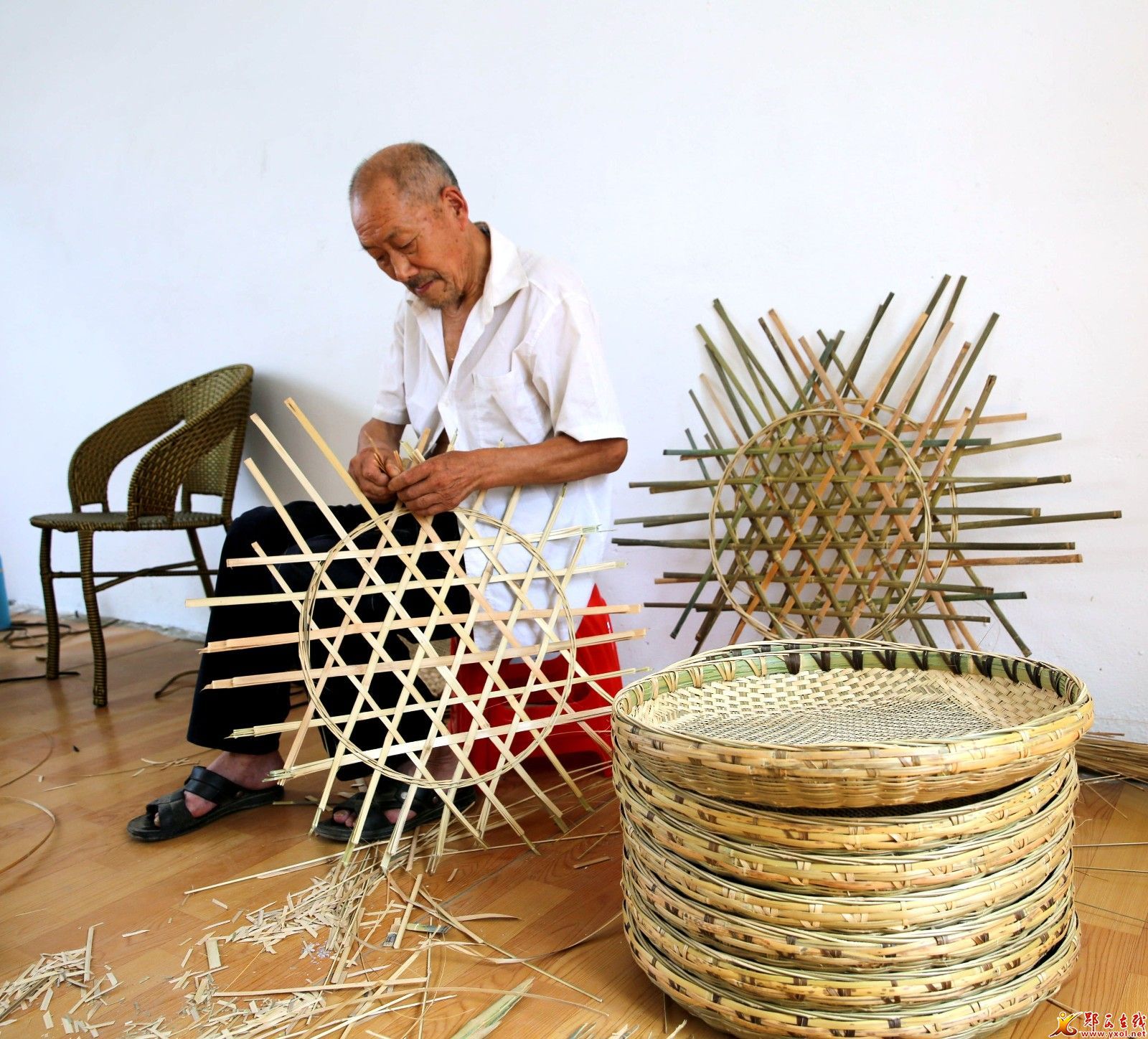图为:李洪成,73岁,土门镇平原村人,一天可以编3个竹簸箕,一个60元,一年编300个左右,年收入1.8万元