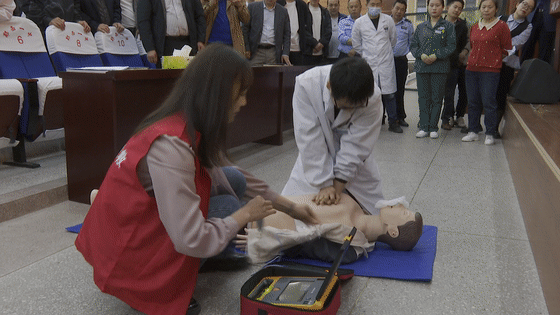 当天,市急救中心培训专家和县120急救中心工作人员还现场为参会人员手把手进行徒手心肺复苏和AED操作技能培训。据急救专家介绍,心肺复苏和AED除颤是最需要人人掌握的急救技能,在黄金救治4分钟内尽早使用AED,并进行高质量的心肺复苏,是心脏骤停救治成功的关键。