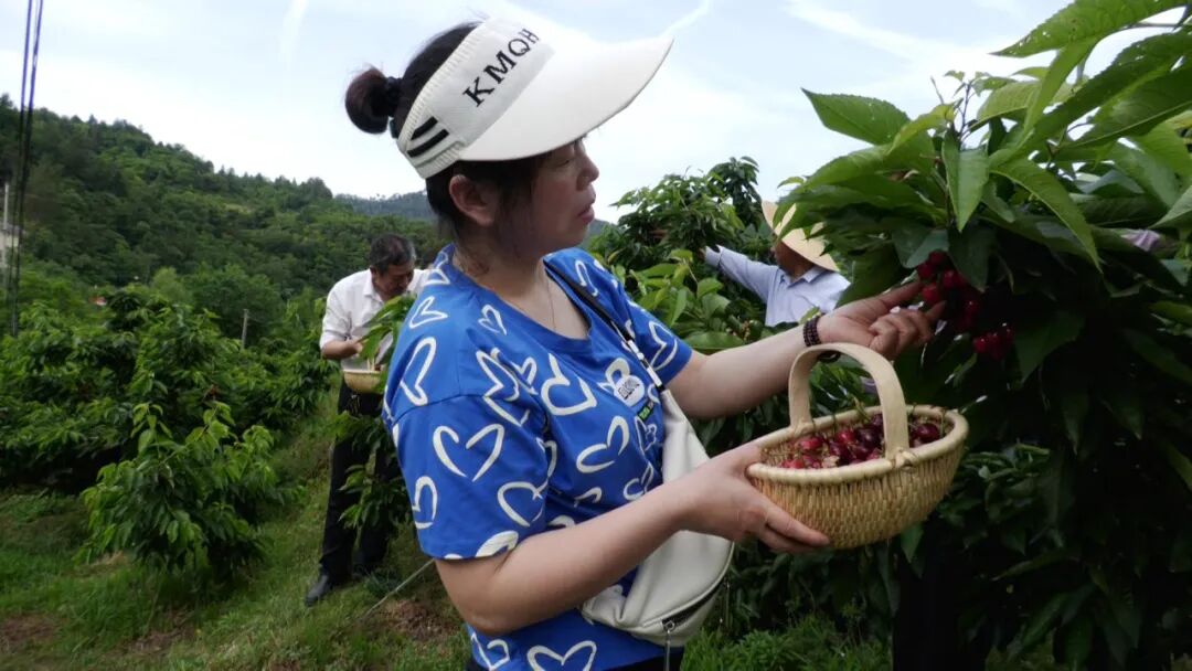 走进采摘园,果树郁郁葱葱,红彤彤的车厘子随风摇曳,色泽诱人、入口脆甜,尽情地展示着“成熟之美”,吸引不少游客入园采摘、品尝鲜果、亲近自然。