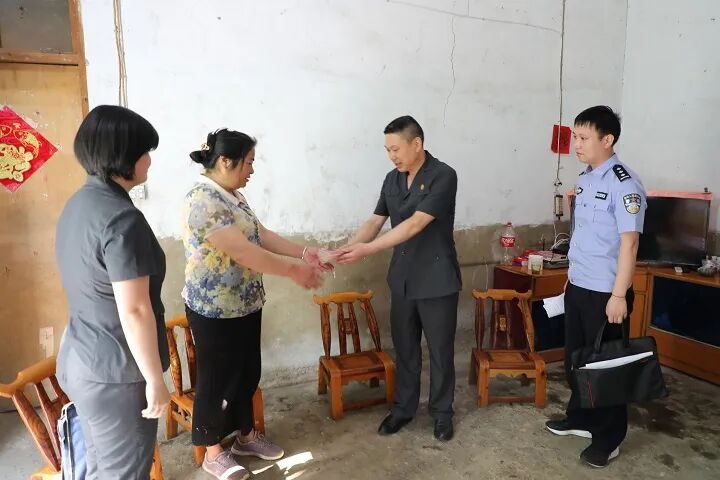 当天上午,县人民法院执行干警还来到城关镇民联小区,将7万多元执行款,送到申请执行人郑某的家里。