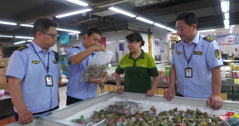 在寿康永乐郧西生活广场,执法人员对节日消费量大的粽子、蛋类等食物进行检查,重点检查粽子的储存和销售温度是否符合标签要求,产品生产日期、保质期、产品标识等是否完整、规范;是否存在过度包装的行为,是否有超期食品销售等问题。