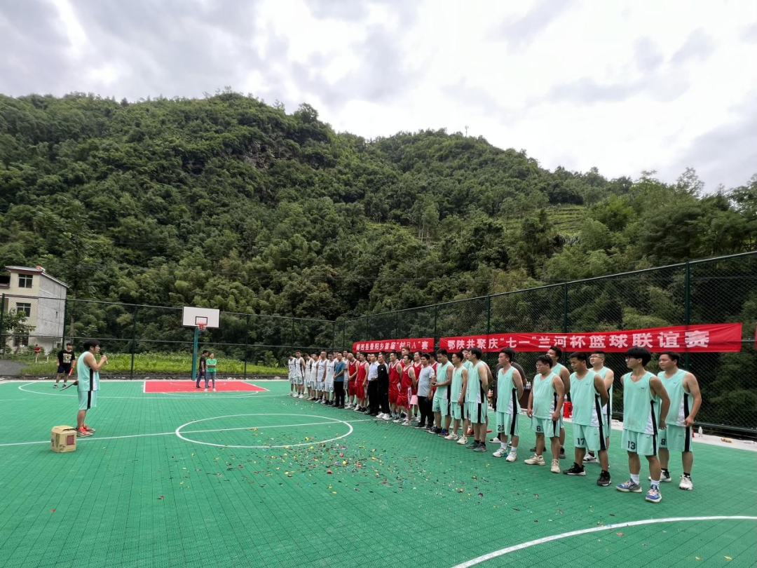 近日,景阳乡兰滩口村鄂陕广场异常热闹,由郧西县景阳乡主办陕西省冷水镇、蜀河镇参与的“鄂陕共聚庆‘七一’兰河杯篮球联谊赛”在景阳乡兰滩口村鄂陕广场举行。