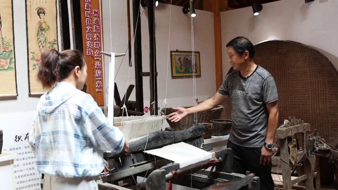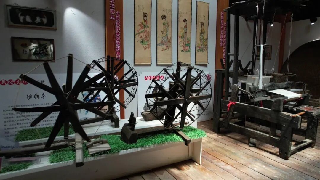 大家看到的是我们天河民俗馆内的一个织布机和纺车,为什么向大家展示这些东西?因为织布机和纺车它主要体现的是男耕女织方面的东西。为什么要展示这些男耕女织呢?很早的时候,在天河流域,我们的女性都非常巧,非常勤劳,所以向大家展示这些东西证明了我们郧西在农耕文明时代它的历史是非常久远的。