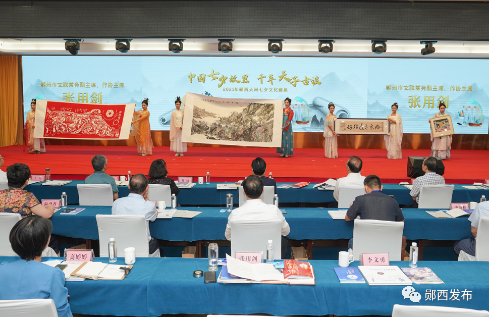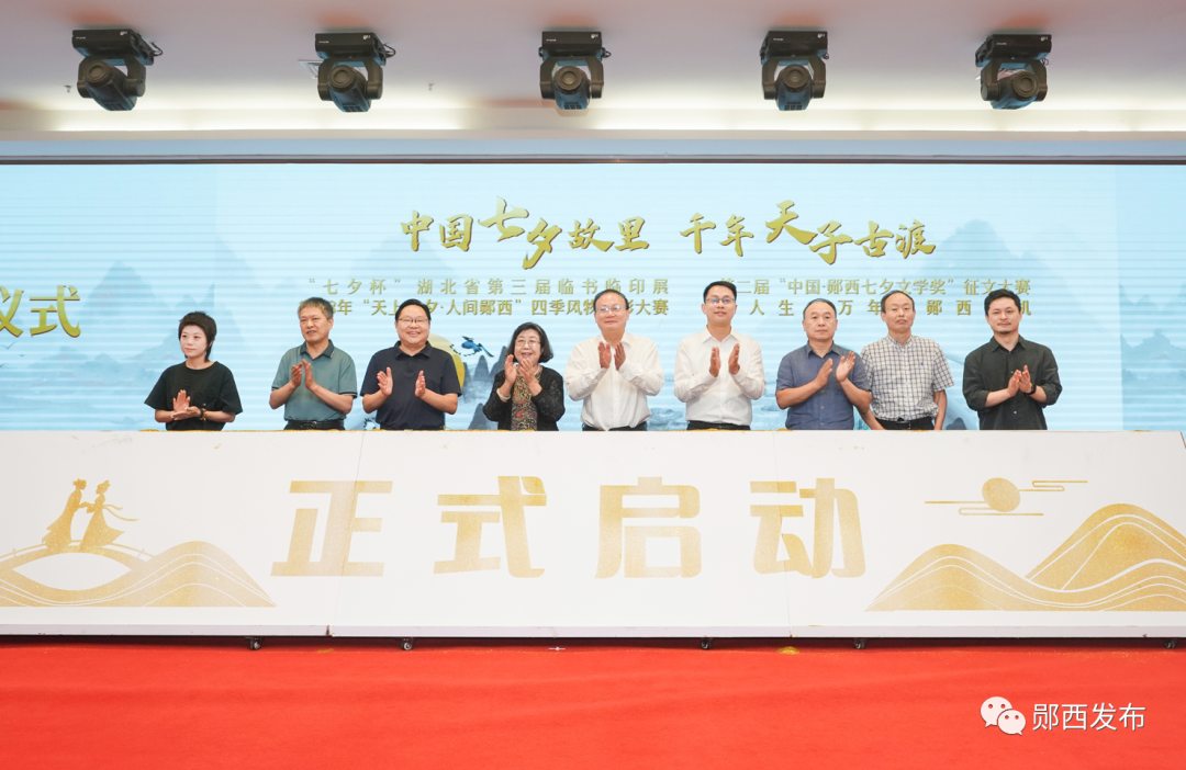 活动现场,宣布了2022年“七夕浪漫城•大美郧西景”四季风光摄影大赛、首届“中国•郧西七夕文学奖”获奖名单,并为获奖代表颁奖。启动了“七夕杯”湖北省第三届临书临印展、2023年“天上七夕•人间郧西”四季风物摄影大赛、第二届“中国•郧西七夕文学奖”征文大赛和纪录片《人生一万年》开机仪式,举办了郧西天河七夕文化研讨会。鄂州市文联常务副主席、作协主席张用剑代表鄂州文艺届向郧西县捐赠了4件文艺作品。