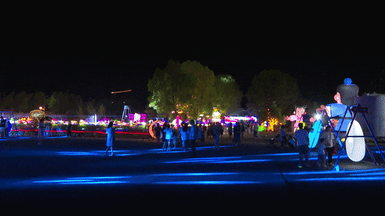 除了逛集市、品美食,在位于天佘大桥桥头原海天石化院内的大型沉浸式光影秀,也吸引着众多游客前来打卡。该院有上万平米,设置多个主题灯展区域,主要凸显极光、梦幻、童话的元素,灯光闪烁,灿若星河。