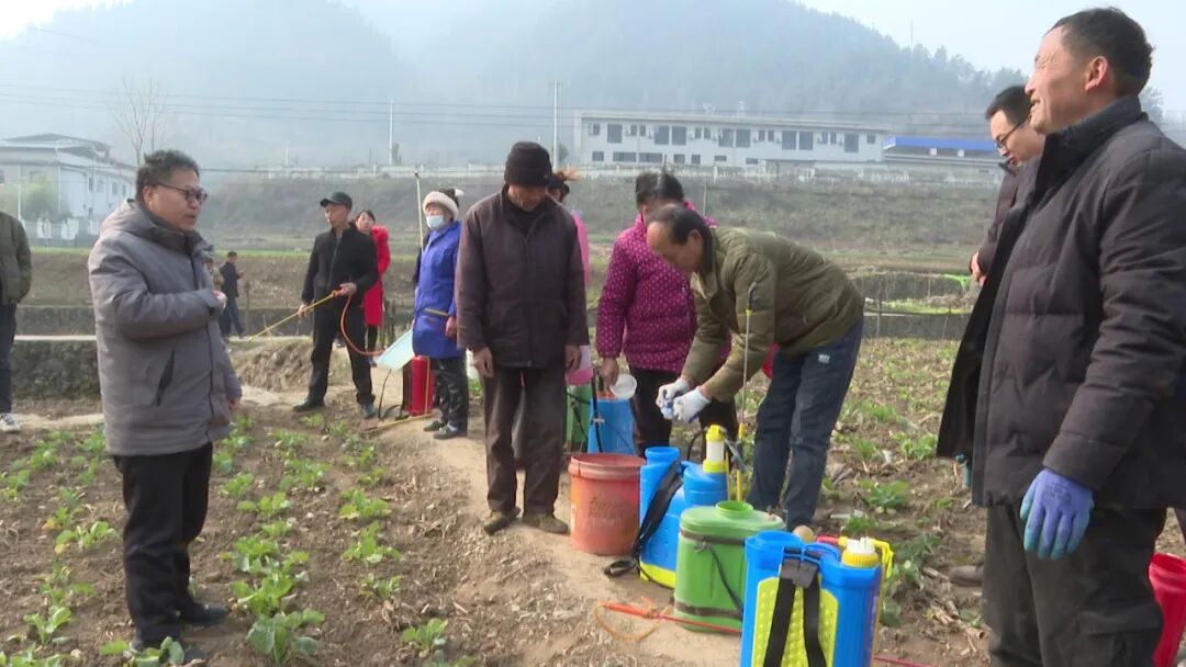 全媒体记者刘辉报道:时下已进入寒冬,但在香口乡黄云铺村油菜地里,县农业农村局高级农艺师丁国田正在针对油菜苗情长势,从防寒保暖、喷施营养液等方面,给村民们讲解技术要领,村民们听得认真,干得火热。