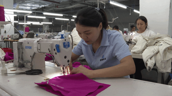 工人田金花告诉记者,公司实行计件工资,自己每个月平均能拿到6000元,遇到赶订单加班的时候还能拿到一万多元,挣钱的同时还能照顾到老人和孩子,感觉非常舒心。