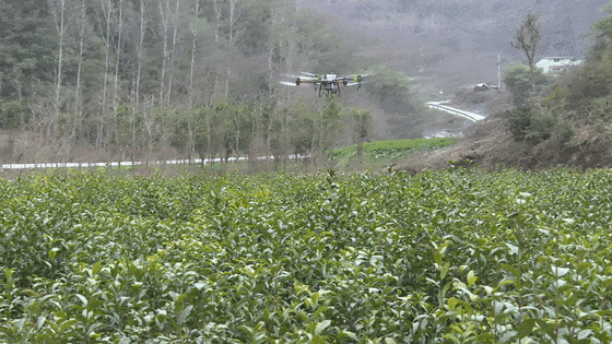 2月19日,在郧西县观音镇黄土梁村小麦和油菜地里,农技人员正在利用无人机开展“飞防”作业,集中喷洒磷酸二氢钾、芸苔素两种药物,提高小麦、油菜抗寒性,保证丰产丰收。