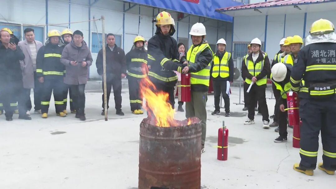 演练结束后,消防队员现场演示灭火器的使用方法和技巧,实际操作从消防车接通、铺开水带、喷水灭火等规定动作。