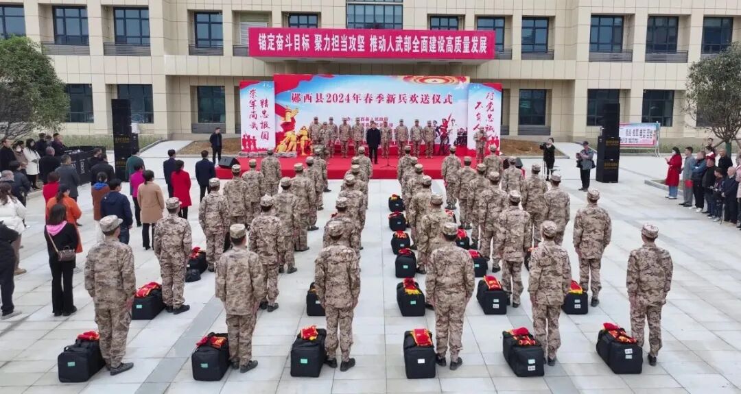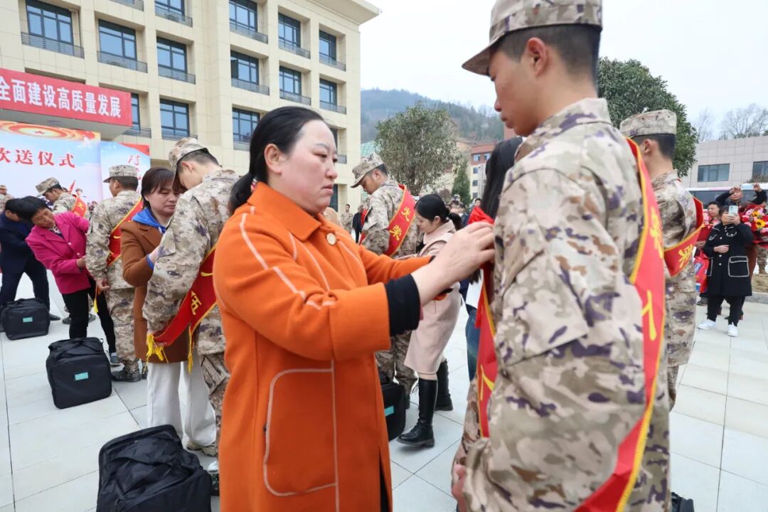 欢送大会上宣布了2024年春季入伍人员名单,入会领导和新兵家长们为入伍新兵佩戴红花,向即将奔赴军营的新兵们表示热烈的祝贺。希望入伍新兵到部队后不辜负家乡人民的厚望,在艰苦的环境中磨炼自己,在平凡的岗位上建功立业,为家乡争光;要处处严格要求自己,积极主动接受系统的军政学习和训练,早日练就过硬本领,早日成为有灵魂、有本事、有血性、有品德的革命军人,为实现中国梦、强军梦,建设世界一流军队贡献应有力量。