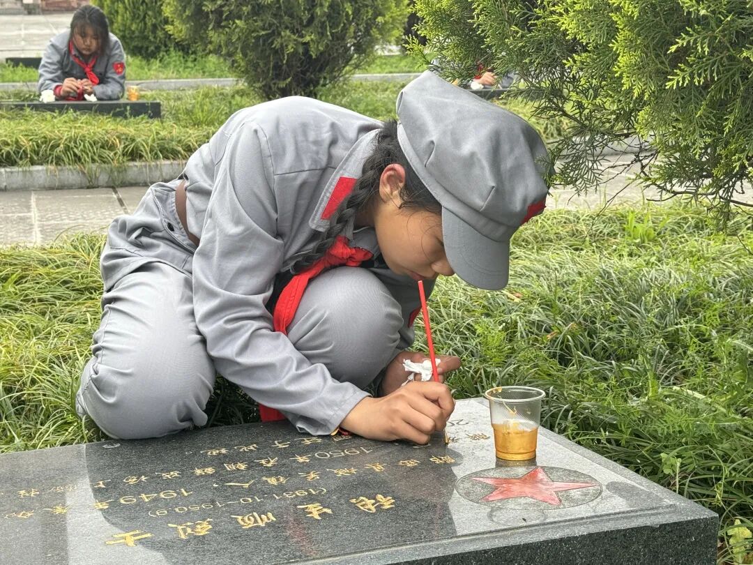 活动中,少先队员为烈士墓碑姓名和五角星进行填漆描金和填漆描红。一笔一划,满含着青少年对革命烈士的缅怀和敬仰,也让墓碑上烈士的姓名更加殷红闪耀。(全媒体记者:张雪玲)