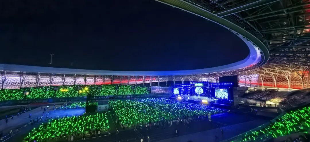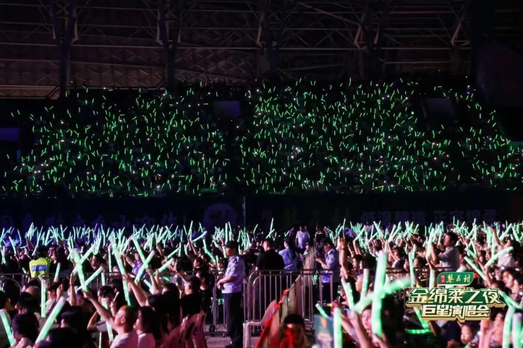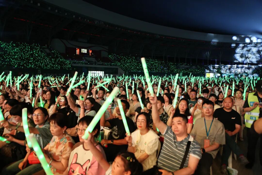 现场挥舞的荧光棒、热情的呐喊声