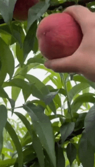 走进采摘园,硕大红艳的鲜桃挂满枝头,在绿叶的掩映下显得格外诱人,游客们手提果篮穿梭在桃林中,采摘、品尝、拍照桃林里不时传出阵阵欢声笑语。