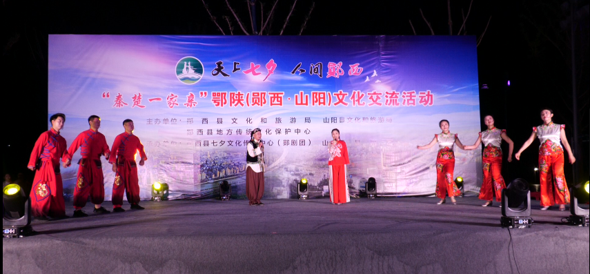 6月16日晚,由郧西县文化和旅游局、山阳县文化和旅游局、郧西县地方传统文化和保护中心主办,郧西县七夕文化传承中心、山阳县剧团联合承办的“秦楚一家亲”鄂陕(郧西 ·山阳)文化交流活动,在郧西县文化体育中心举行。各类精彩的文艺节目,为现场观众送上了一场文化盛宴吸引了不少居民群众到场观看。