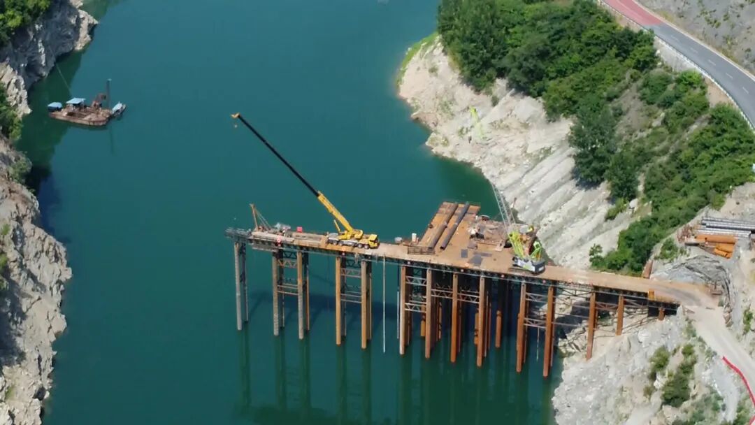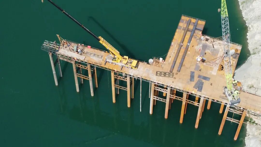 由于桩基属于库区深水基础施工,常年水深35米左右,施工难度较大建设单位克服困难、不断优化施工,在保障安全生产的前提下扎实推进工程建设。