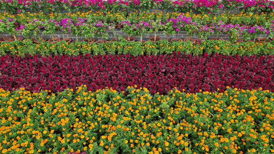 郧西县园林绿化管理局副局长王海青介绍,在花卉摆放上选择有一串花、迎春花、鸡冠花等红色花卉,在造型上则选择有五角星等体现红色文化的造型。