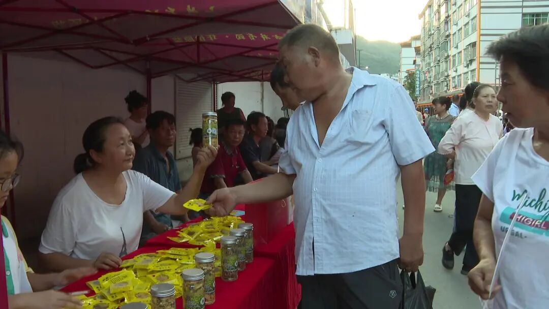 现场还设置了农特产品展销区,参展的农产品琳琅满目,品种繁多汇聚了本地的特色农产品,让消费者可以一站式尽享“家乡美味”.无公害产品受到了客商和群众的一致喜爱大家竞相购买,10个展销台,13家农户参与18种农特产品参展.当晚销售农副产品近400斤,现场交易额达5万余元.