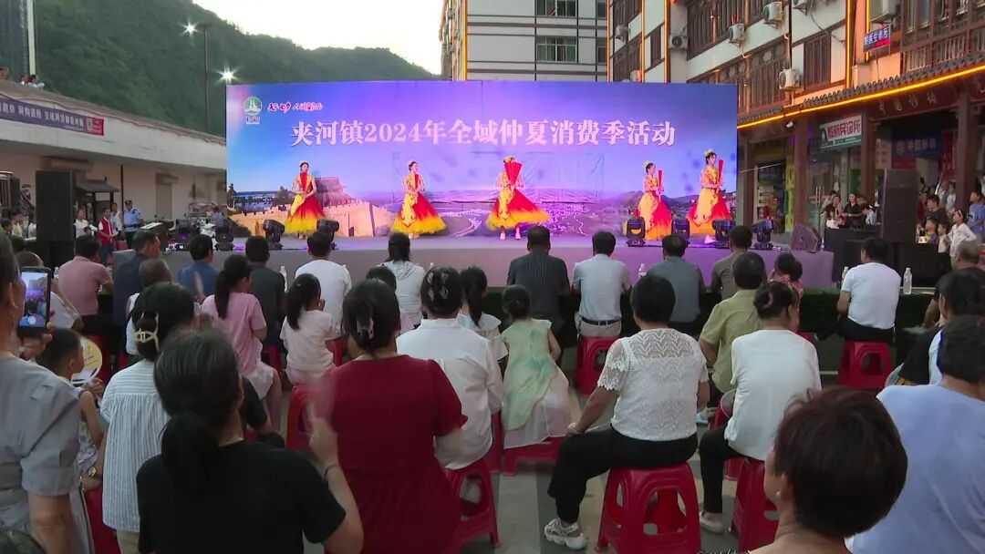 夜幕降临,华灯初上汉江河畔已经是人潮涌动一曲喜庆热闹的《辉煌中国》开场舞拉开了为期6天的夹河镇2024年全域仲夏消费季暨农产品展销活动的序幕