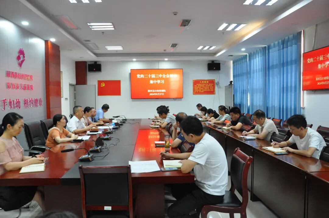 党的二十届三中全会召开以来,郧西县妇幼保健院把学习宣传贯彻党的二十届三中全会精神作为当前和今后一个时期的首要政治任务,全面落实理论学习中心组、党总支会议、党员大会“第一议题”制度,采取“集中学+自主学”“线上学+线下学”“辅导授课+交流研讨”等方式,多措并举持续掀起党的二十届三中全会精神学习热潮。