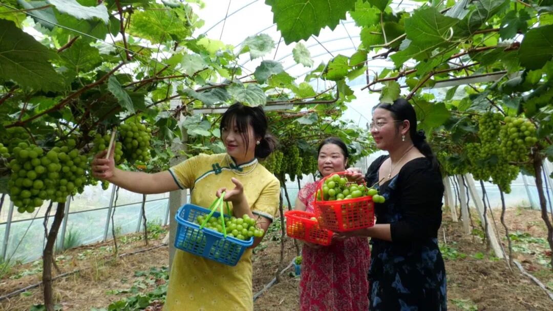 游客在河夹镇龙窝村葡萄园采摘葡萄