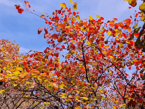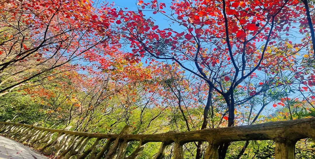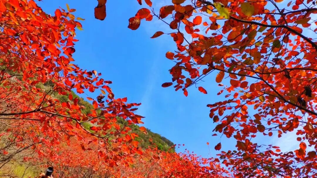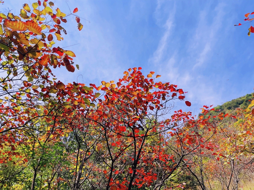 天空湛蓝如洗,秋日的暖阳洒满山峦,放眼望去尽是橙红橘绿沉醉于这一派精美的景色,不禁被大自然的鬼斧神工所折服随手一拍,足够令人惊艳。