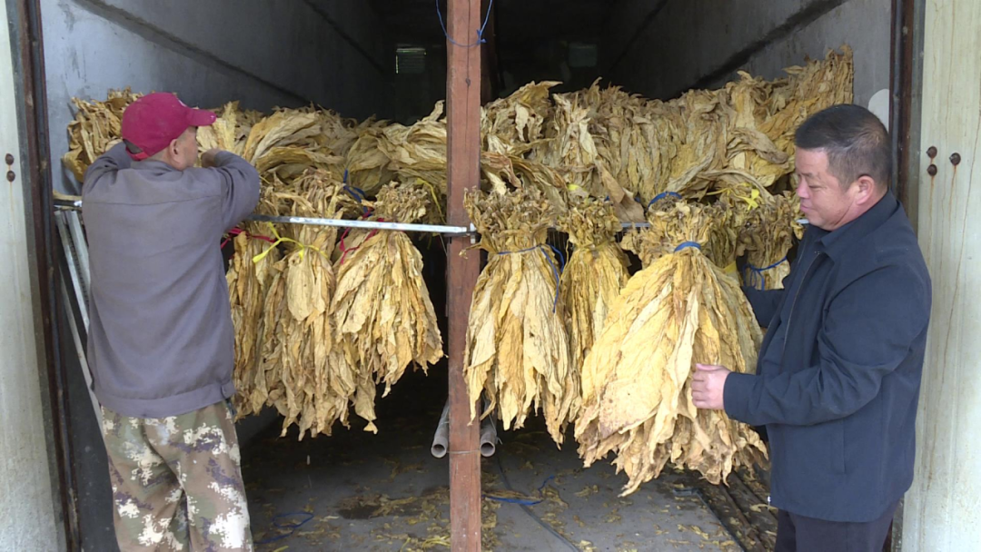 对于烘烤完成的烟叶,烟农们按照桔黄、柠檬黄等不同的颜色和烟叶生长的部位,进行分级、扎把、打捆。在仓库,一捆捆金黄色的烟叶堆放整齐,等待晴好天气装车送往收购点交售。