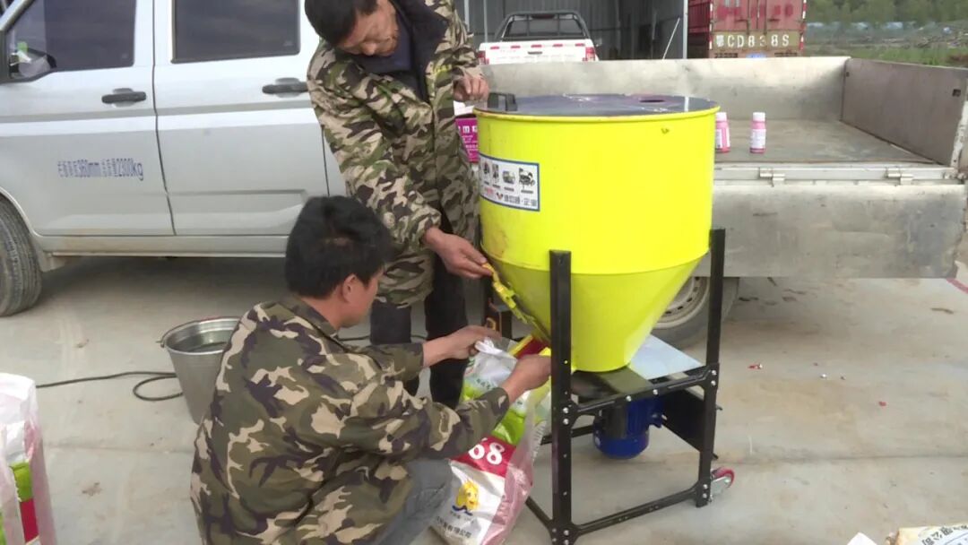 近日,在香口乡上香口的海涛农场里,大家紧张有序忙碌着,拌种机在匀速旋转几分钟后,白籽麦种穿上鲜红的外衣,看着特别抢眼。药剂拌种不仅是控制病虫害的关键技术措施,同时还可以减少农药使用量。药剂拌种相较于白籽下地,不仅省工、省时、省药,还能达到苗齐苗壮的效果,增强作物的抗逆性。