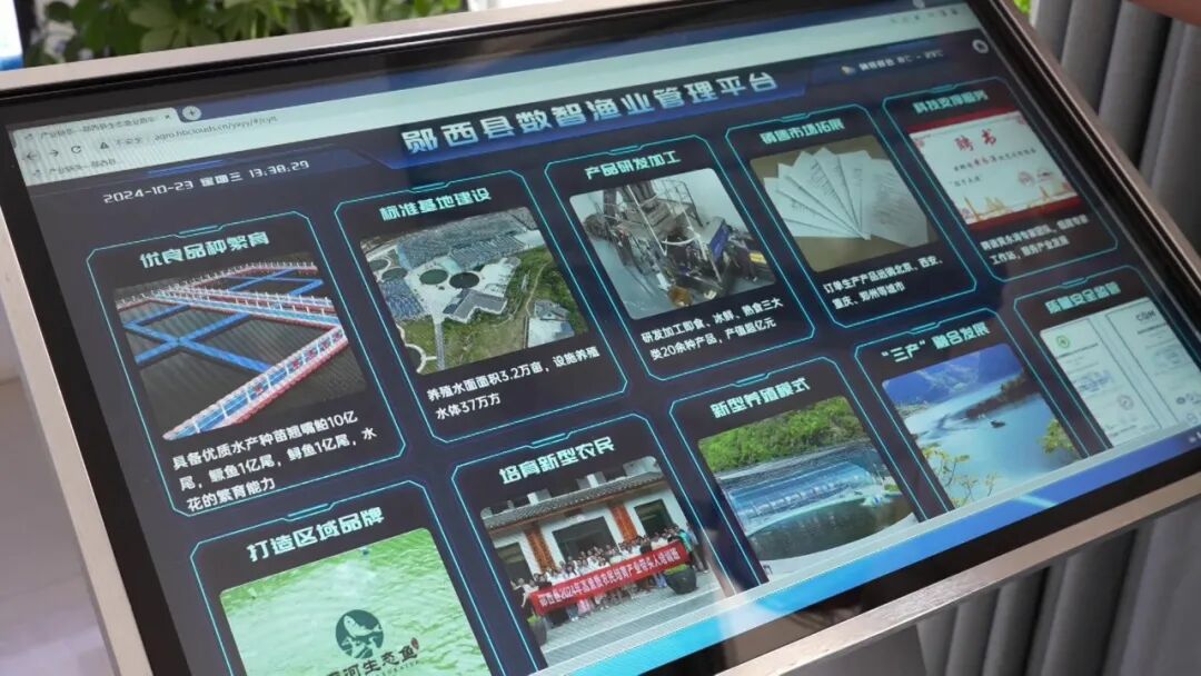 郧西县智慧渔业养殖基地负责人苏新添介绍,通过运用”高密度、高产量、智能化、零排放、环保型”循环高效养殖系统、实现“流(活)水”养鱼,致力于打造“绿色、低碳、智能、生态”的现代数字渔业产业园。六郎,河夹,土门养殖基地共计产量2000吨,实现渔业综合产值1.5亿元。