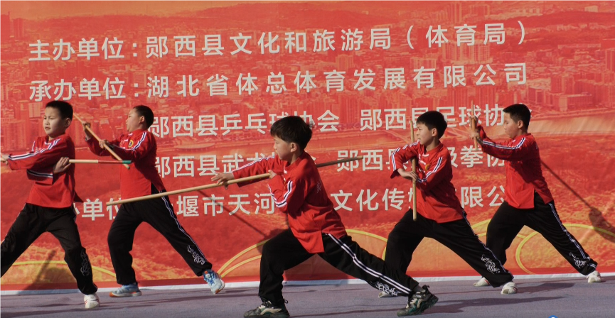 此次活动由县文化和旅游局(体育局)主办,湖北省体总体育发展有限公司、郧西县乒乓球协会、武术协会、足球协会、太极拳协会承办,十堰市天河七夕传媒有限公司协办。活动中,各协会精心推出了武当18式、42式太极拳、32式太极剑、24式太极伞、武当太极拳九势、武当49式太极剑、功夫扇、八段锦、《跆风少年》《武动新春》等武术、太极拳节目展演。