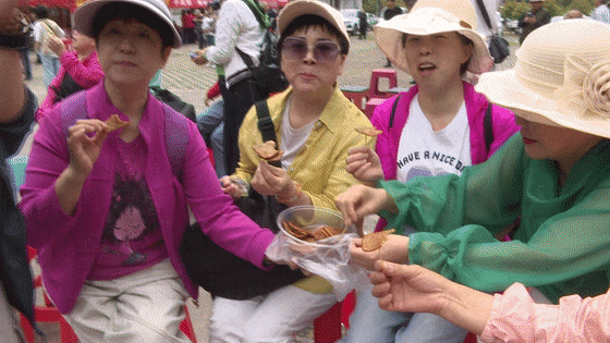 樱桃受欢迎,而板桥豆腐干、神仙叶凉粉也不遑多让,同样十分俏销。板桥村商户告诉记者,今天豆腐干卖的相当可以,卖完一批又一批,收入五六千元。