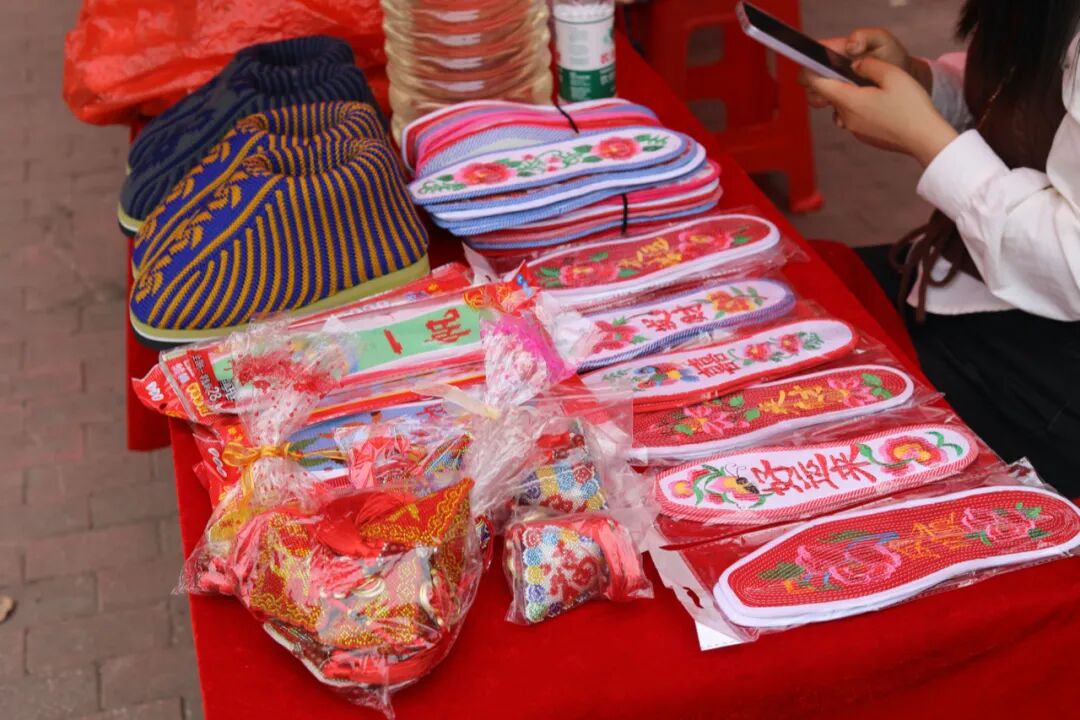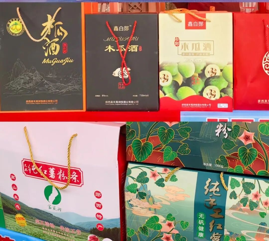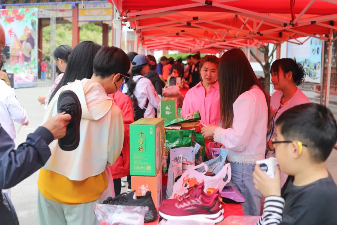 演出现场,羊尾镇组织的农特产品展销也是十分火爆,新鲜的樱桃、无矾红薯粉条、板桥豆干、羊肚菌、木瓜酒等特色农产品琳琅满目,备受游客青睐,其中来自龙潭河村的本地樱桃最受欢迎。