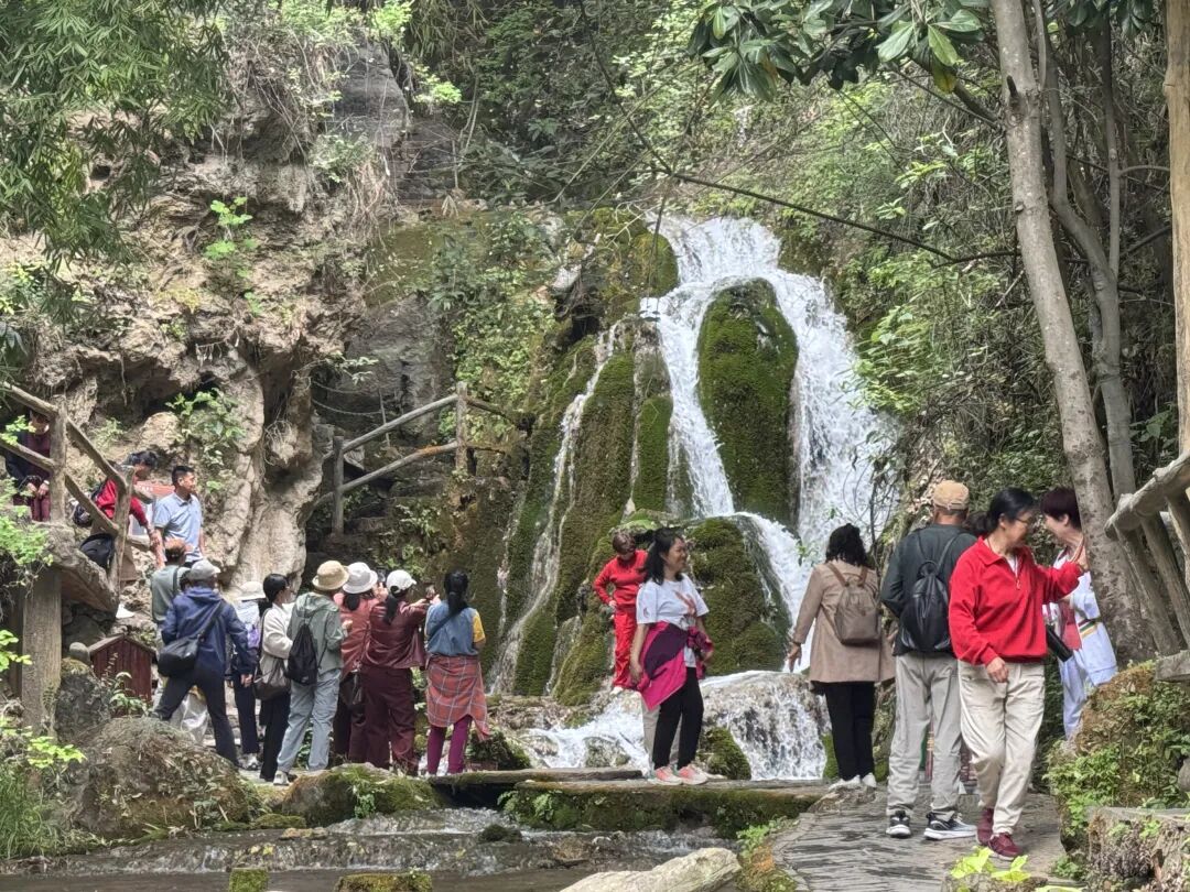 走进景区,春日的龙潭河绿意盎然,美丽迷人,清澈见底的溪水,重峦叠嶂的瀑布,绿树成荫的山林散发着春日气息。游客或拍照留念、或驻足观赏,或玩水嬉戏,或临水小憩,美丽的风景让大家心旷神怡、流连忘返。