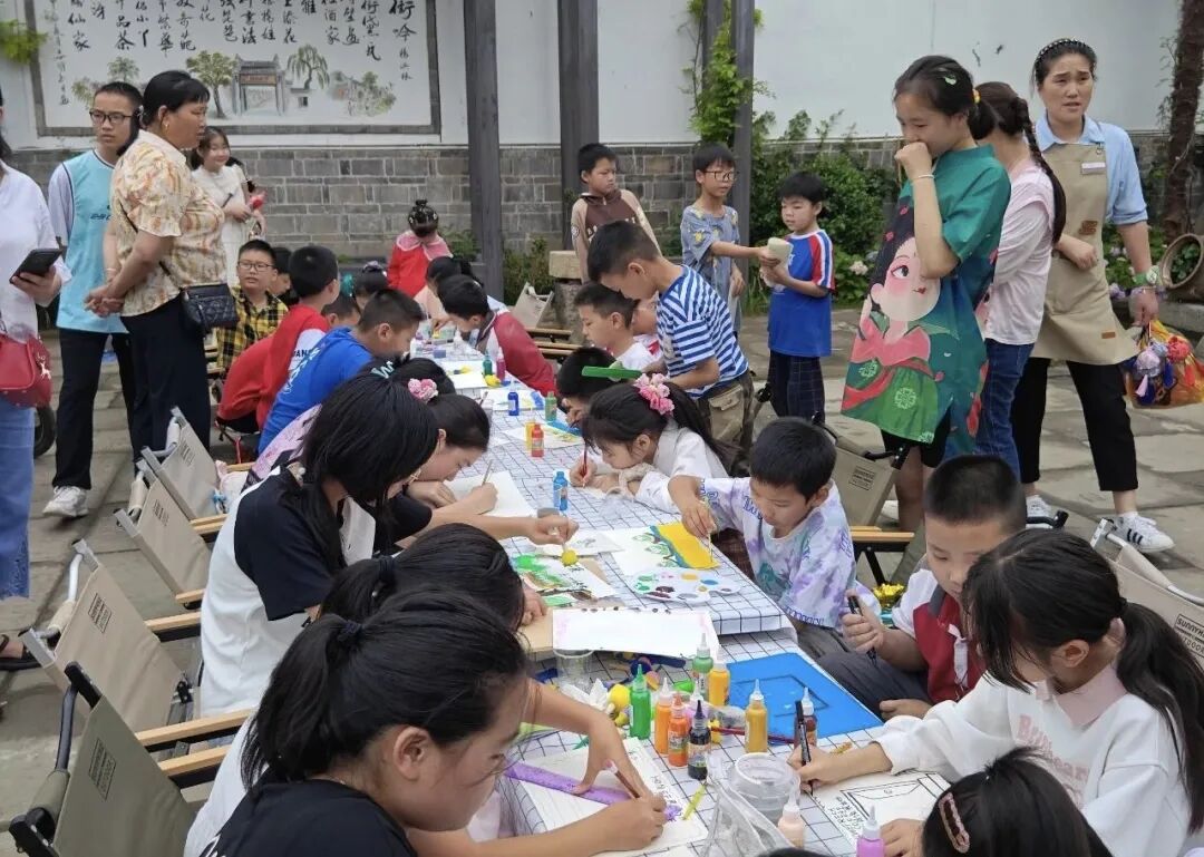 童话谷·天空宿集开展吃粽子、戴香囊、点额礼、系五彩绳、投壶、踏艾草、猜灯谜等活动,让孩子们在粽香与欢笑中感受端午文化。