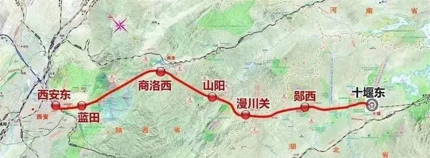 西十高铁西起陕西西安,向东南穿越秦岭山脉,经商洛,终到十堰。全长255.76公里,设计时速350公里,沿途设西安东、蓝田、商洛西、山阳、漫川关、郧西、十堰东7站。
