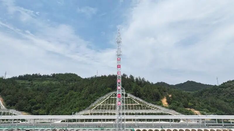 该塔位于西十高铁湖北段郧西车站信号楼,由武九客专湖北公司建设管理,中国铁路通信信号上海工程局集团有限公司承建,采用单元组合式角钢塔结构,铁塔高45m,为西十高铁湖北段高度最高、施工难度最大的单体铁塔。通信铁塔作为各类通信设备的支撑平台,承载着基站天线等关键设施,能够确保信号稳定覆盖高铁线路,保障列车在高速行驶过程中与地面控制中心的实时、准确通信。弱电系统则是高速铁路的“神经中枢”和“大脑”,是保证列车安全运行的重要保障。