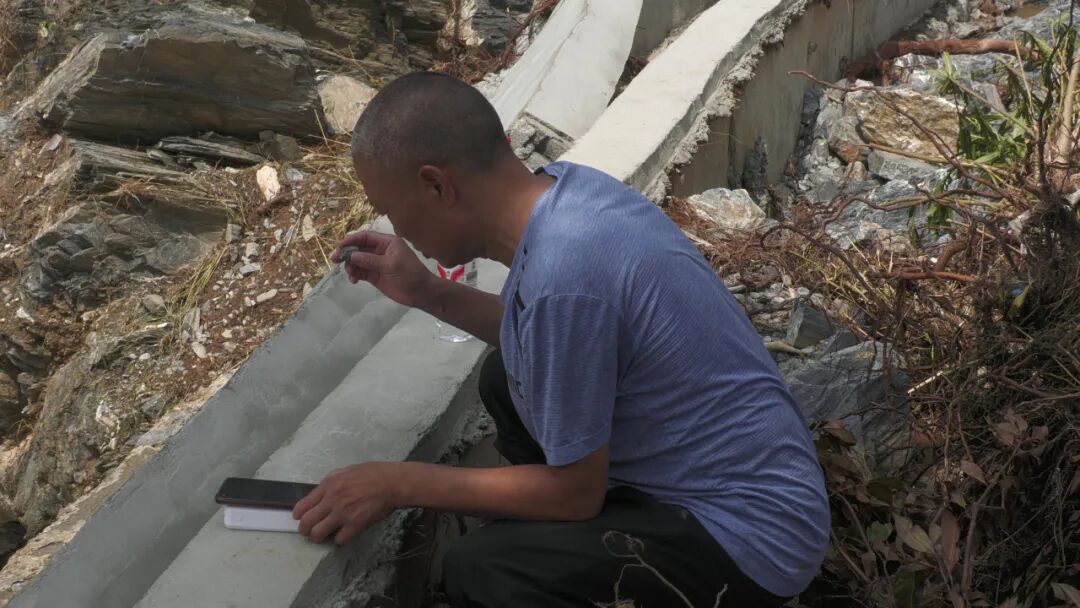 (李青富在受灾现场开展灾后恢复工作)