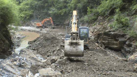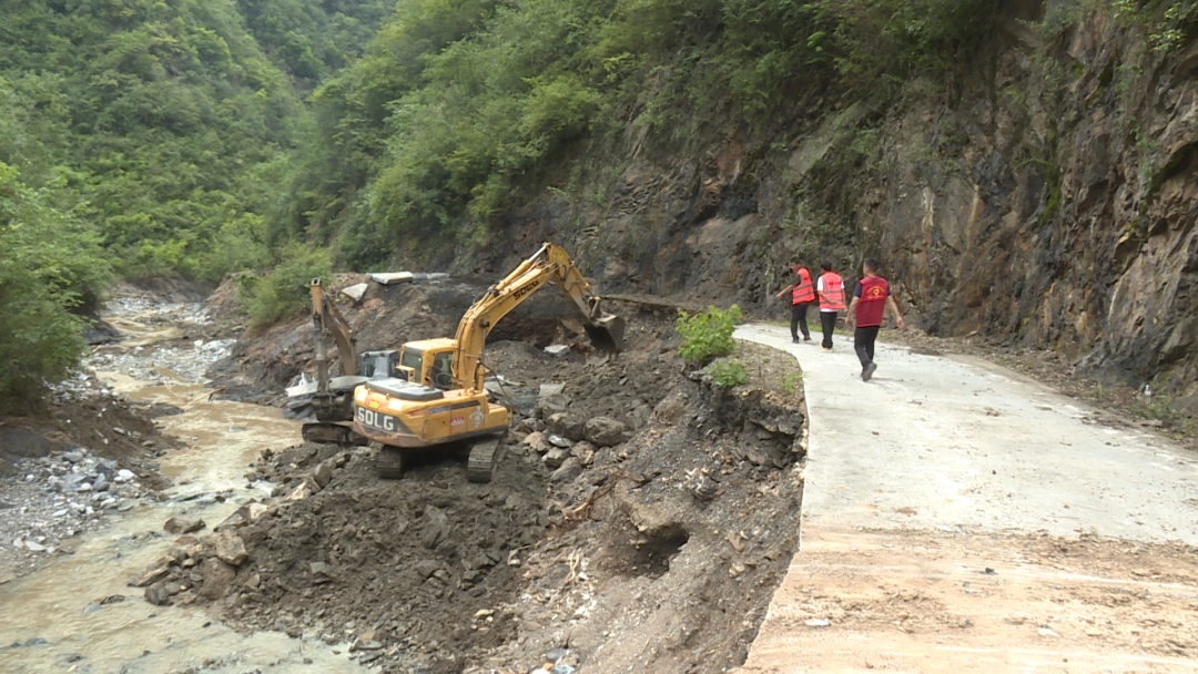 日前,记者在香口乡孟川村分水岭至上津镇王家湾村分王线公路青龙山段看到,县农路养护中心正组织多台机械抓紧时间抢修水毁道路,现场机声隆隆,一片繁忙景象。