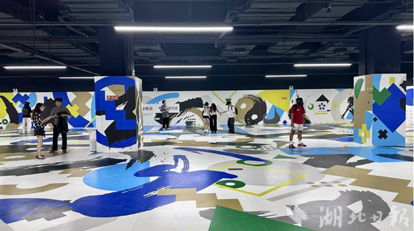 在武汉万象城一楼“联觉”门店,由湖北文旅集团联合清华大学打造的国内首个国风大空间VR(虚拟现实)极致互动体验项目——“逍遥武当”,吸引了不少亲子游市民排队体验。