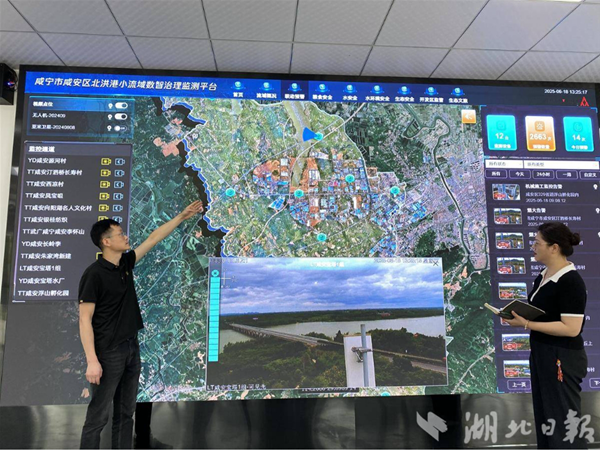 咸安区北洪港流域数智治理监测平台,实现流域内质、土壤、植被等生态要素实时监测。(记者刘天纵摄)