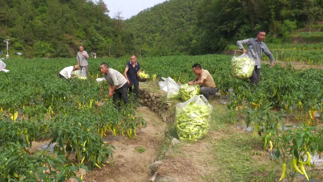 近日,郧西县观音镇中沟村黄皮辣椒种植基地里30多名务工人员,穿梭在翠绿的椒田之间,娴熟地进行采摘、分拣、装框、运输,一袋袋色泽光亮、脆嫩欲滴的黄皮椒正整装待发源源不断地运往十堰华西市场.