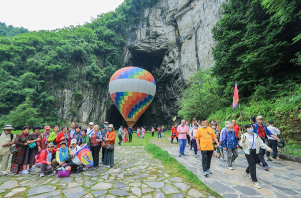 游客在腾龙洞景区参观游览。(湖北日报全媒记者 蔡俊 摄)
