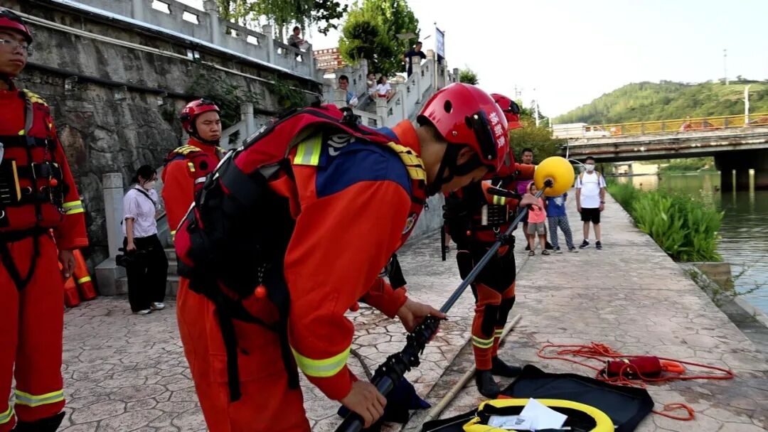 演练现场同步开展安全宣教活动,消防人员逐一演示救生拉杆、抛绳包、无人机抛投救生圈等装备的操作原理,并讲解不同水域环境下的救援策略,现场群众纷纷驻足学习,互动气氛热烈。
