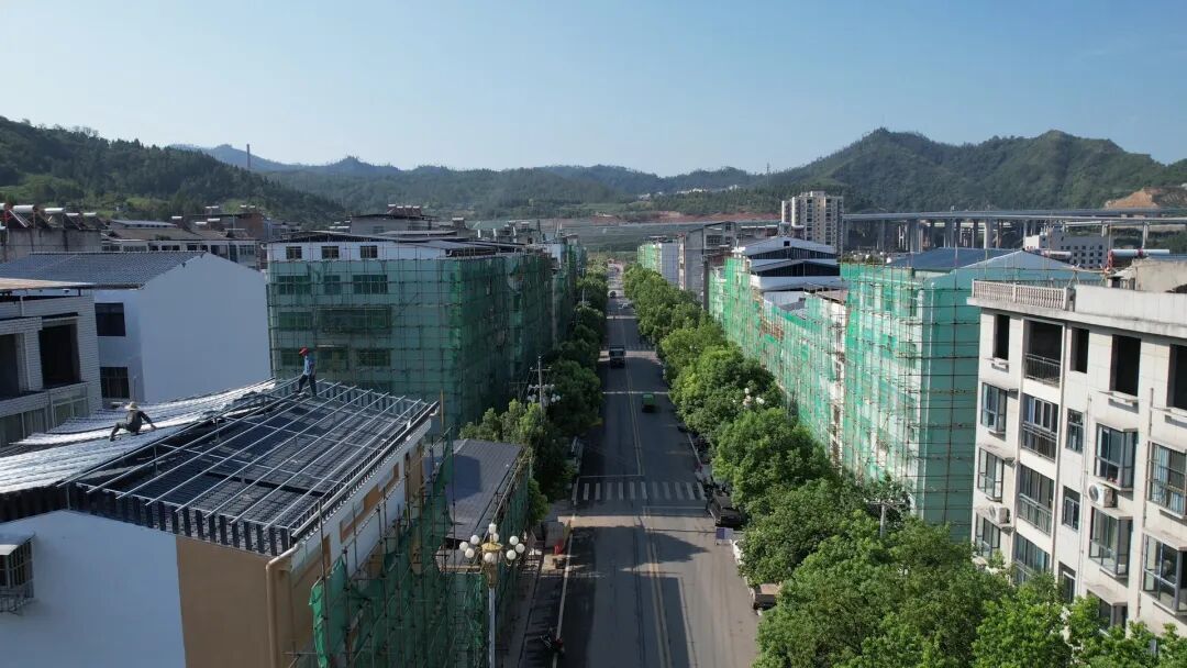 佘家湾社区老旧小区改造施工现场负责人张谦介绍,佘家湾旧城改造提档升级项目于7月8日启动,项目部抢时间抓进度保质量,目前已完成墙面喷漆、屋顶改造总工程量的80%。
