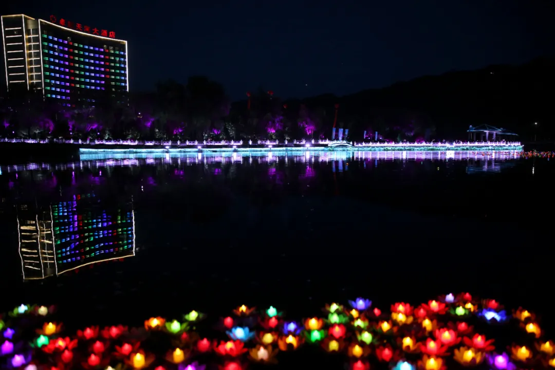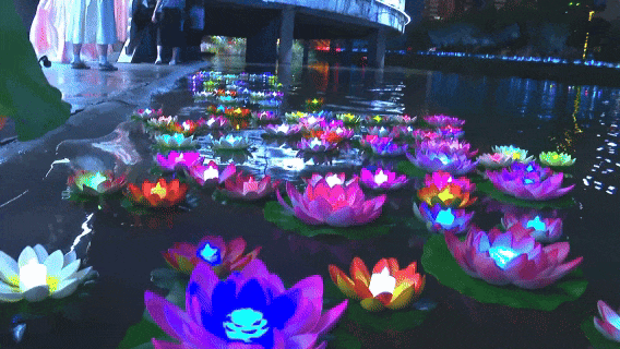 简短的祈福仪式之后,“仙女”们手持点亮的河灯缓步走向河边,将河灯轻轻放在波光粼粼的水面之上,夜幕下,盏盏河灯托着心愿,带着祝福,将河面点缀得如梦如幻,让广大市民和游客们在体验七夕传统文化的同时,感受着七夕浪漫城的魅力。