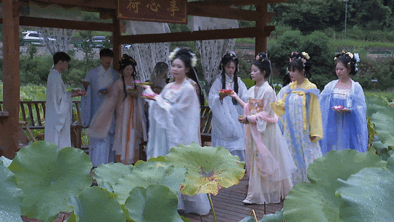 值得一提的是,8月28日晚,土门镇家竹村任家湾也提前营造出七夕的浪漫氛围,一场温馨的祈福放河灯活动在此开展,7名 “仙女” 身着色彩鲜艳的传统服饰,伴着轻快的节奏翩翩起舞,随后沿着花丛小径缓缓穿行,双手轻轻捧着河灯,将其投放到波光闪烁的流水中,默默许下属于自己的美好心愿。