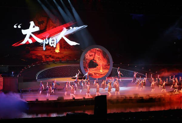 灯光渐隐,时空回溯,观众遁入苍茫远古。“巫山猿人”“长阳人”“太阳人”石刻等依次登场。创意舞蹈《太阳人》以时间为轴,舒展开长江三峡的文明史诗。