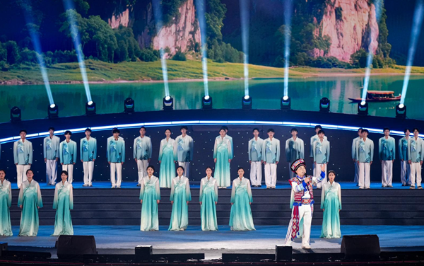 “水生万物,生出这烟火人间……”悠扬舒缓的歌声,与远处潺潺的江流、连绵的翠峦相映成画,谱写出最具宜昌风味的《水之韵》。