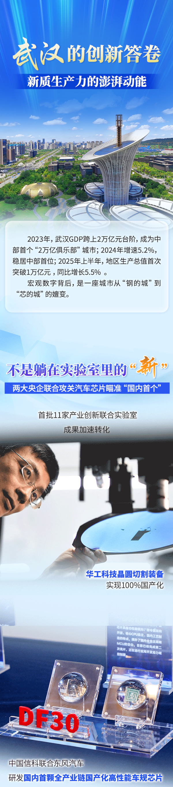 牢记嘱托,从“新”出发。“十四五”期间,武汉坚持把创新驱动作为城市发展主导战略,加快转型突围,新技术、新产品加速破圈,具有全国影响力的科技创新高地加速建设,一个更富有活力的创新城市正在涌现。