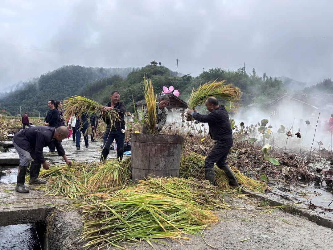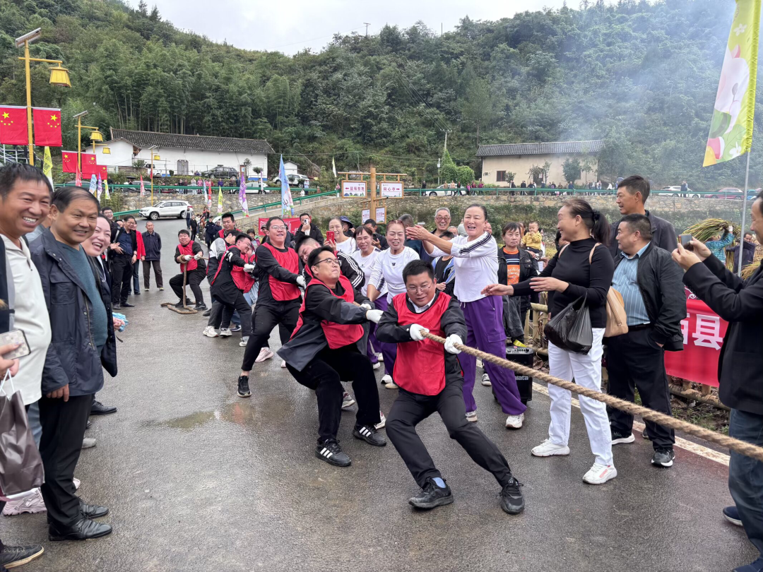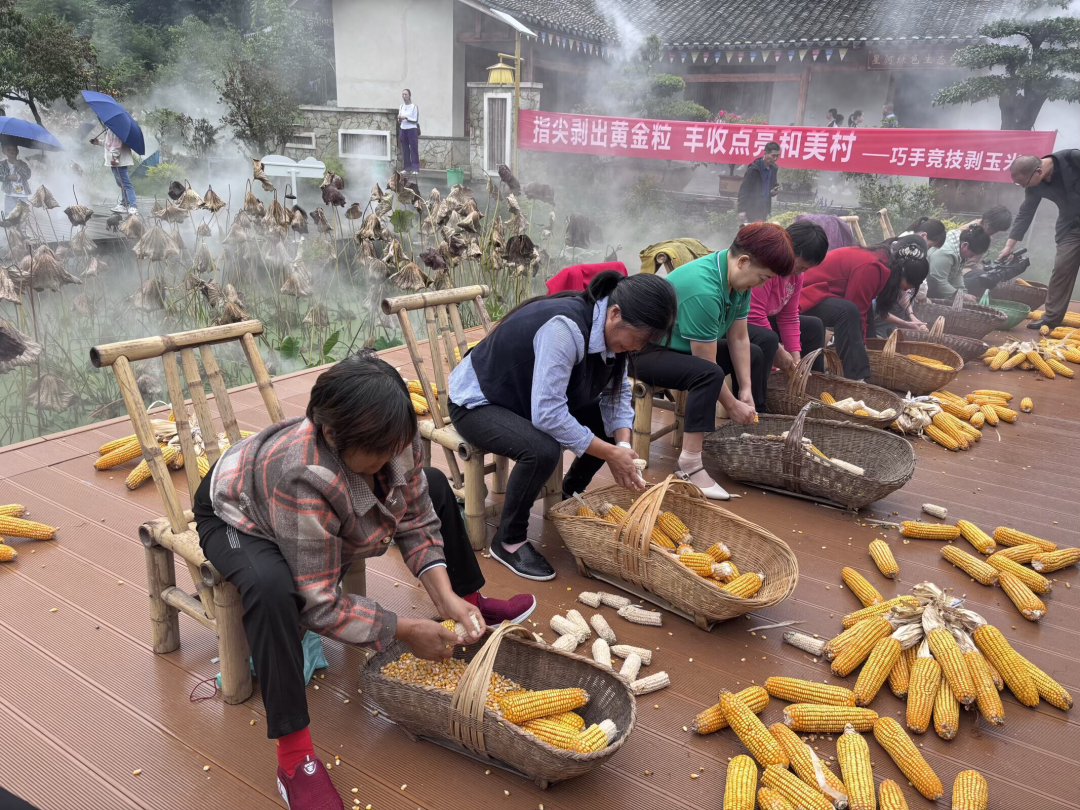 随着游客陆续汇聚而来,拔河、剥玉米、割稻谷比赛在家竹村任家湾同步开展。